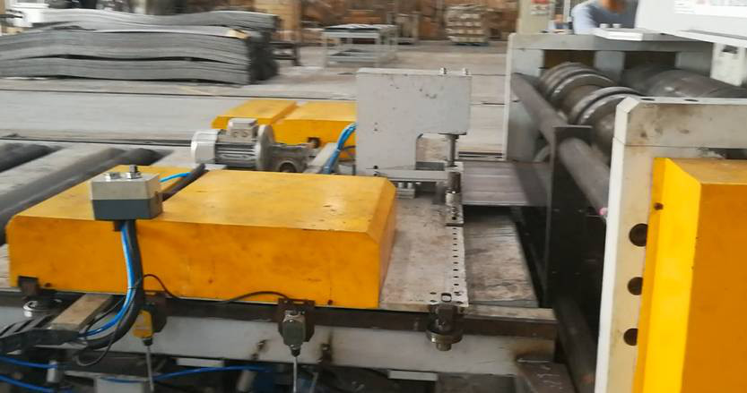 When the plate reach the front of slitting unit , plate will be stopped, this device will rise the plate , in order that the dolly can clamp and move the plate.