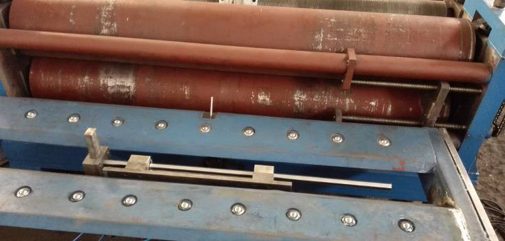 There is a dolly in the front of the double edge slitting unit. It is for control the slitting straight and rectangle plate size. By change the position of the stopper on dolly to control the rectangle plate size .