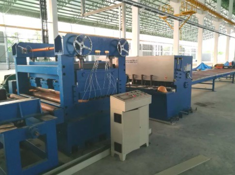 It is for light pole material uncoiling, leveling, cutting, scrape edge slitting and taper slitting process, to get one side small width, one side big width steel plate.