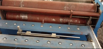 The two rollers’ rotation feeds the material to edge slitting unit. The up roller’s up and down: hydraulic