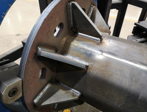 The welding system are applied for light pole base plate welding production. By real time communication between robot and welding power, according to different welding position to gain good quality welding seam,.